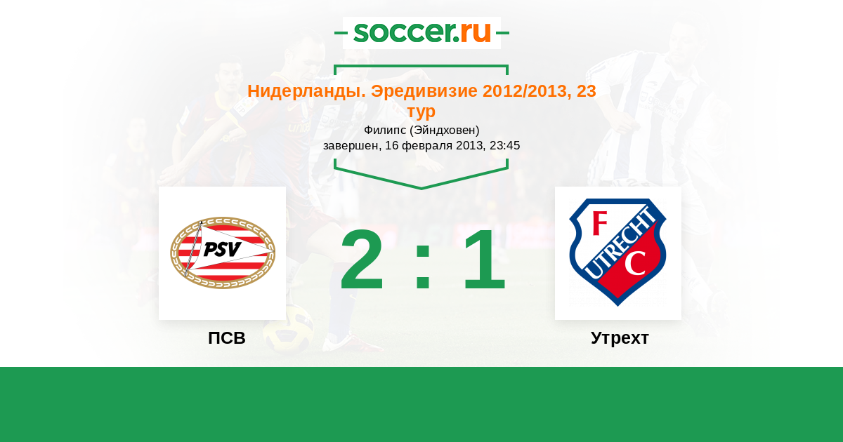 Нидерланды. Эредивизи 07.02.2015 ПСВ Логотип футбольный клуб ПСВ (Эйндховен) 3:1 Логотип футбольный клуб Утрехт Утрехт