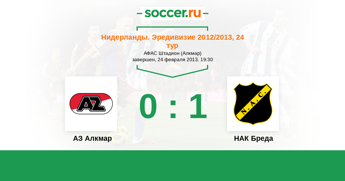 Нидерланды. Эредивизи 18.03.2012 АЗ Алкмар Логотип футбольный клуб АЗ Алкмар 0:0 Логотип футбольный клуб НАК Бреда НАК Бреда
