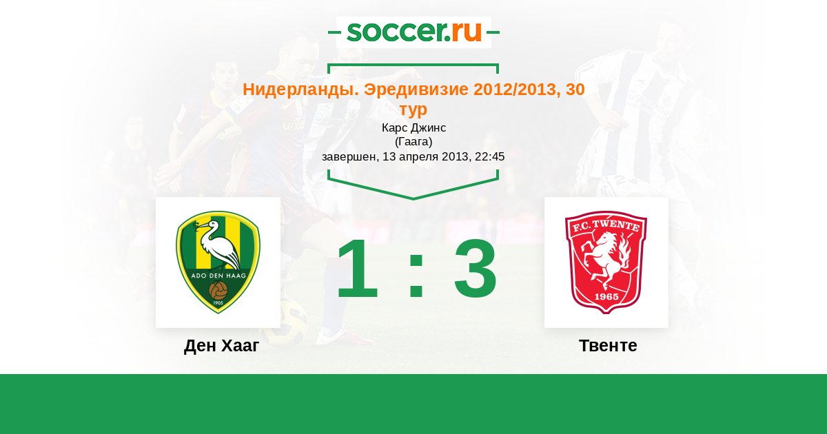 Нидерланды. Эредивизи 01.12.2012 Твенте Логотип футбольный клуб Твенте (Энсхеде) 2:0 Логотип футбольный клуб Ден Хааг (Гаага) Ден Хааг