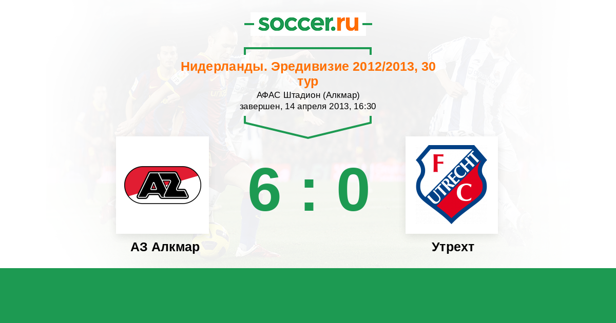 Нидерланды. Эредивизи 25.08.2013 Утрехт Логотип футбольный клуб Утрехт 2:0 Логотип футбольный клуб АЗ Алкмар АЗ Алкмар