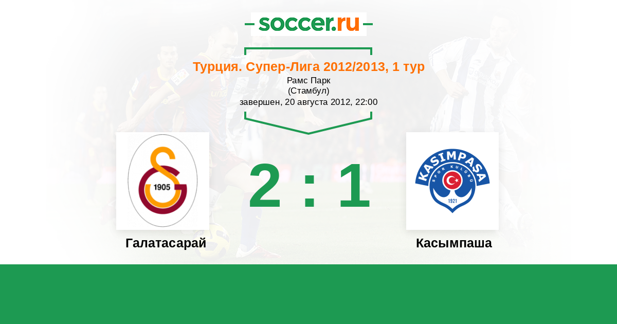Турция. Суперлига 18.01.2013 Касымпаша Логотип футбольный клуб Касымпаша (Стамбул) 2:1 Логотип футбольный клуб Галатасарай (Стамбул) Галатасарай