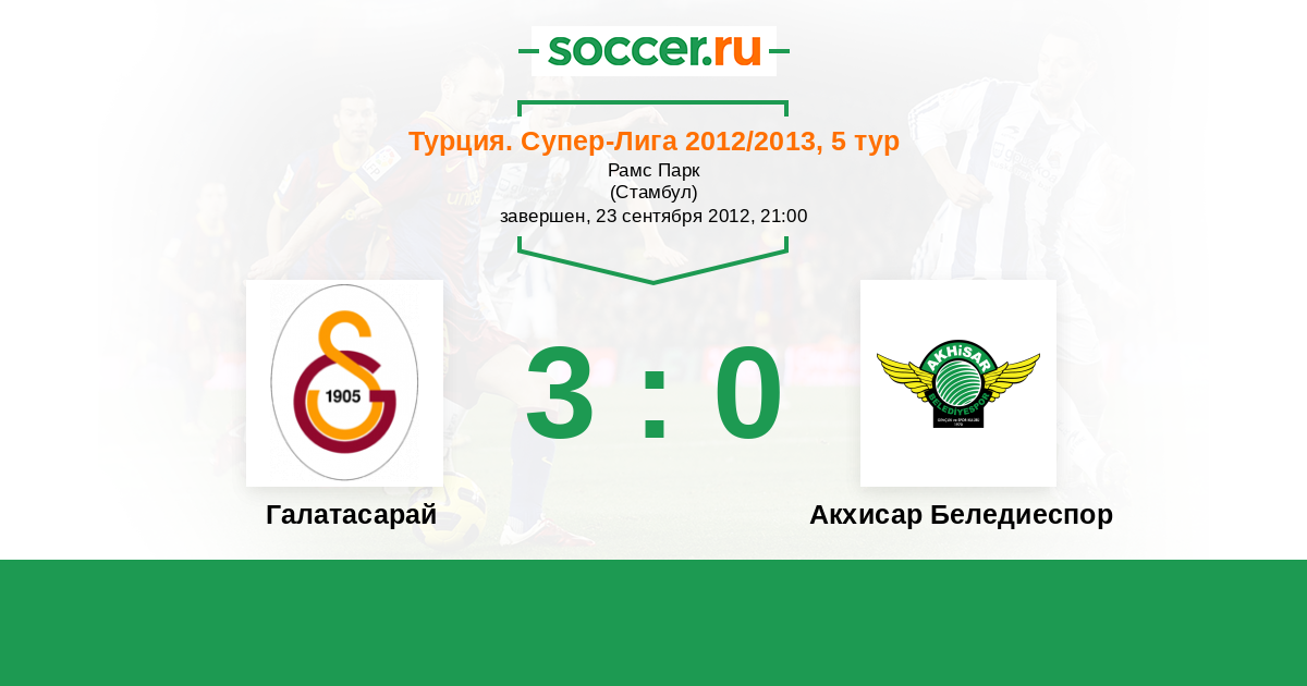 Турция. Суперлига 06.10.2013 Акхисар Беледиеспор Логотип футбольный клуб Акхисар Беледиеспор 2:1 Логотип футбольный клуб Галатасарай (Стамбул) Галатасарай