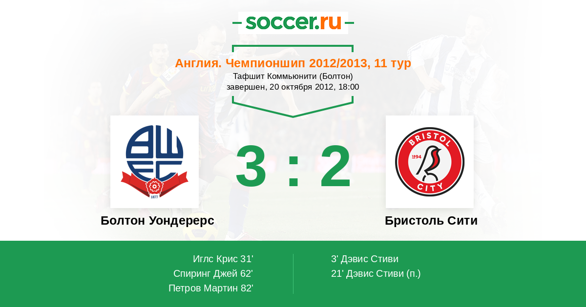 Англия. Чемпионшип 13.04.2013 Бристоль Сити Логотип футбольный клуб Бристоль Сити 1:2 Логотип футбольный клуб Болтон Уондерерс Болтон Уондерерс