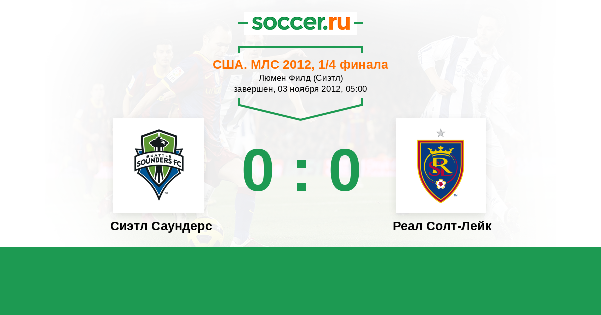 США. МЛС 18.10.2012 Сиэтл Саундерс Логотип футбольный клуб Сиэтл Саундерс 0:0 Логотип футбольный клуб Реал Солт-Лейк (Солт-Лейк-Сити) Реал Солт-Лейк