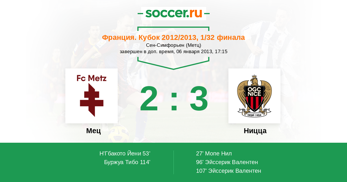 Франция. Лига 1 27.01.2018 Мец Логотип футбольный клуб Мец 2:1 Логотип футбольный клуб Ницца Ницца