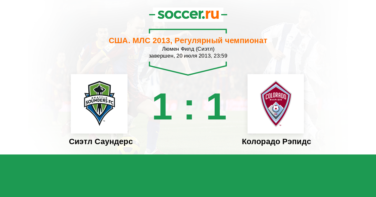 США. МЛС 21.04.2013 Колорадо Рэпидс Логотип футбольный клуб Колорадо Рэпидс (Денвер) 0:1 Логотип футбольный клуб Сиэтл Саундерс Сиэтл Саундерс