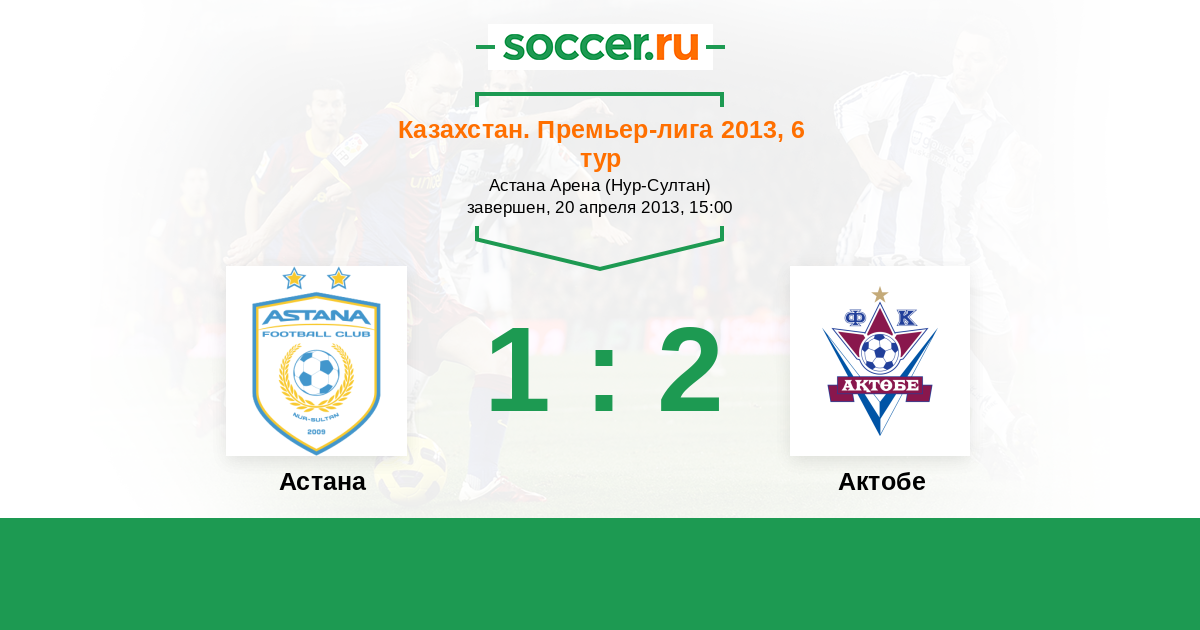Казахстан. Премьер-лига 23.06.2013 Актобе Логотип футбольный клуб Актобе 2:1 Логотип футбольный клуб Астана Астана