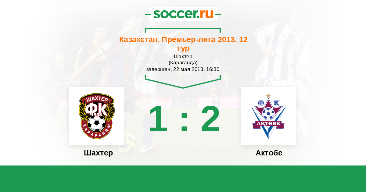 Казахстан. Премьер-лига 12.06.2011 Шахтер Логотип футбольный клуб Шахтер (Караганда) 1:0 Логотип футбольный клуб Актобе Актобе