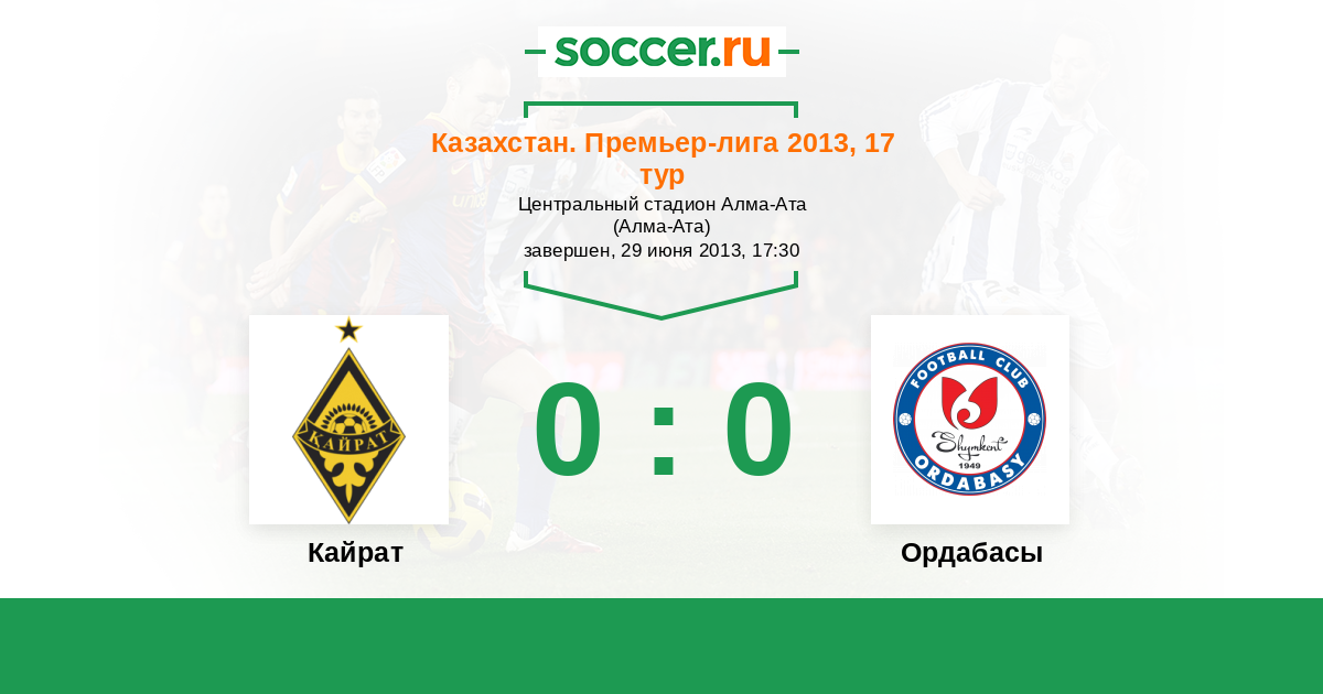 Казахстан. Премьер-лига 19.10.2013 Кайрат Логотип футбольный клуб Кайрат (Алматы) 0:0 Логотип футбольный клуб Ордабасы (Шымкент) Ордабасы