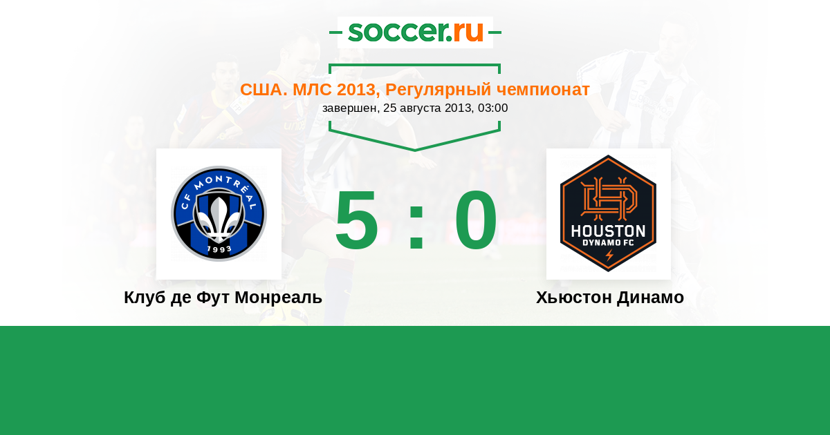США. МЛС 05.10.2013 Хьюстон Динамо Логотип футбольный клуб Хьюстон Динамо 1:0 Логотип футбольный клуб Клуб де Фут Монреаль Клуб де Фут Монреаль