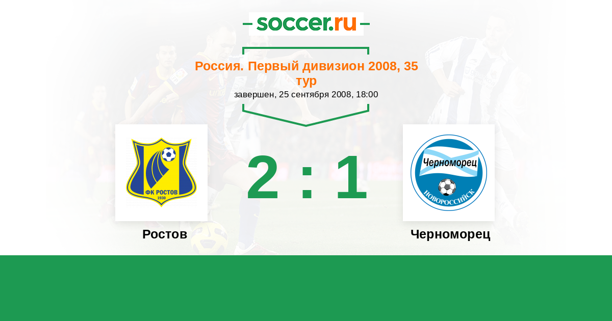 Россия. Первая лига 04.06.2008 Черноморец Логотип футбольный клуб Черноморец (Новороссийск) 0:1 Логотип футбольный клуб Ростов (Ростов-на-Дону) Ростов
