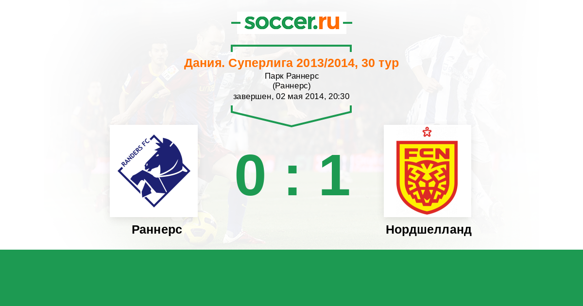 Дания. Суперлига 30.09.2013 Нордшелланд Логотип футбольный клуб Нордшелланд (Фарум) 1:0 Логотип футбольный клуб Раннерс Раннерс
