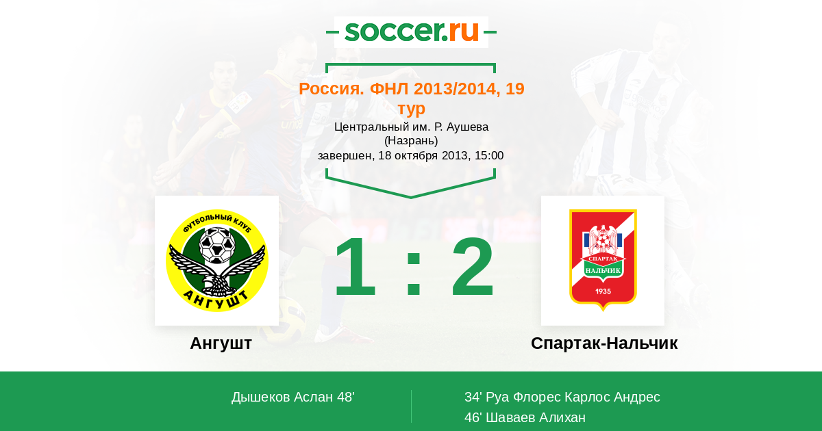 Россия. Первая лига 11.05.2014 Спартак-Нальчик Логотип футбольный клуб Спартак-Нальчик 3:1 Логотип футбольный клуб Ангушт (Назрань) Ангушт
