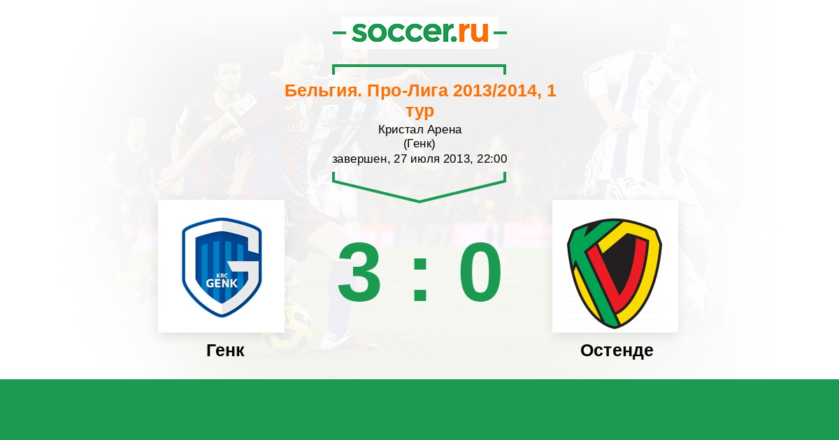 Бельгия. Про-Лига 23.11.2013 Остенде Логотип футбольный клуб Остенде 4:0 Логотип футбольный клуб Генк Генк
