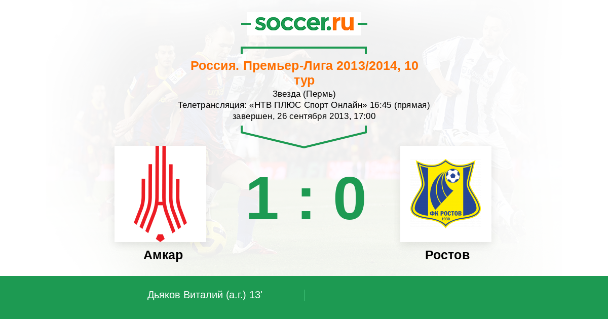 Россия. Премьер-Лига 17.05.2013 Амкар Логотип футбольный клуб Амкар (Пермь) 3:2 Логотип футбольный клуб Ростов (Ростов-на-Дону) Ростов