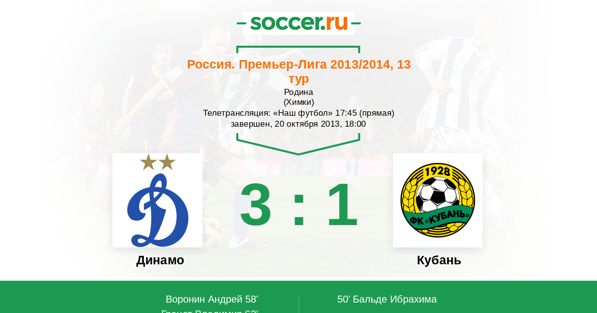 Россия. Премьер-Лига 16.03.2013 Кубань Логотип футбольный клуб Кубань (Краснодар) 1:1 Логотип футбольный клуб Динамо (Москва) Динамо
