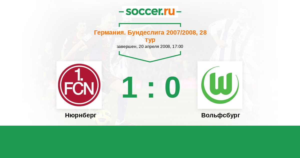 Германия. Бундеслига 28.04.2007 Нюрнберг Логотип футбольный клуб Нюрнберг 1:1 Логотип футбольный клуб Вольфсбург Вольфсбург