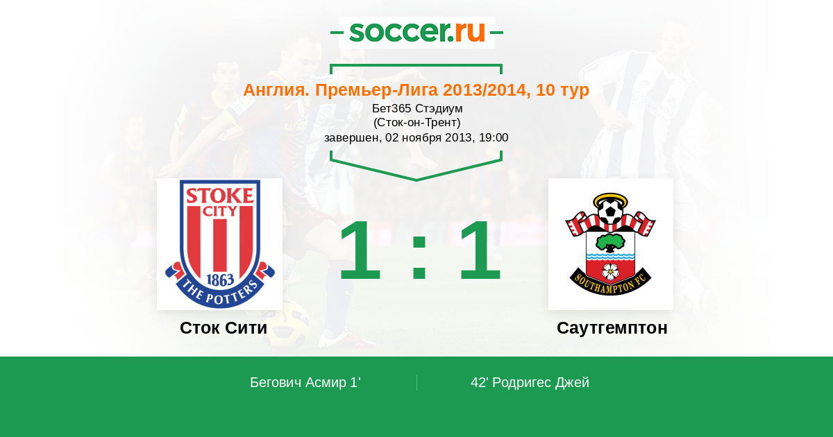 Англия. Премьер-Лига 25.10.2014 Саутгемптон Логотип футбольный клуб Саутгемптон 1:0 Логотип футбольный клуб Сток Сити (Сток-он-Трент) Сток Сити