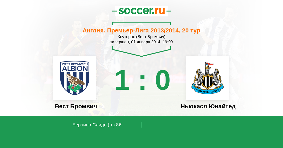 Англия. Премьер-Лига 30.11.2013 Ньюкасл Юнайтед Логотип футбольный клуб Ньюкасл Юнайтед (Ньюкасл-апон-Тайн) 2:1 Логотип футбольный клуб Вест Бромвич Вест Бромвич
