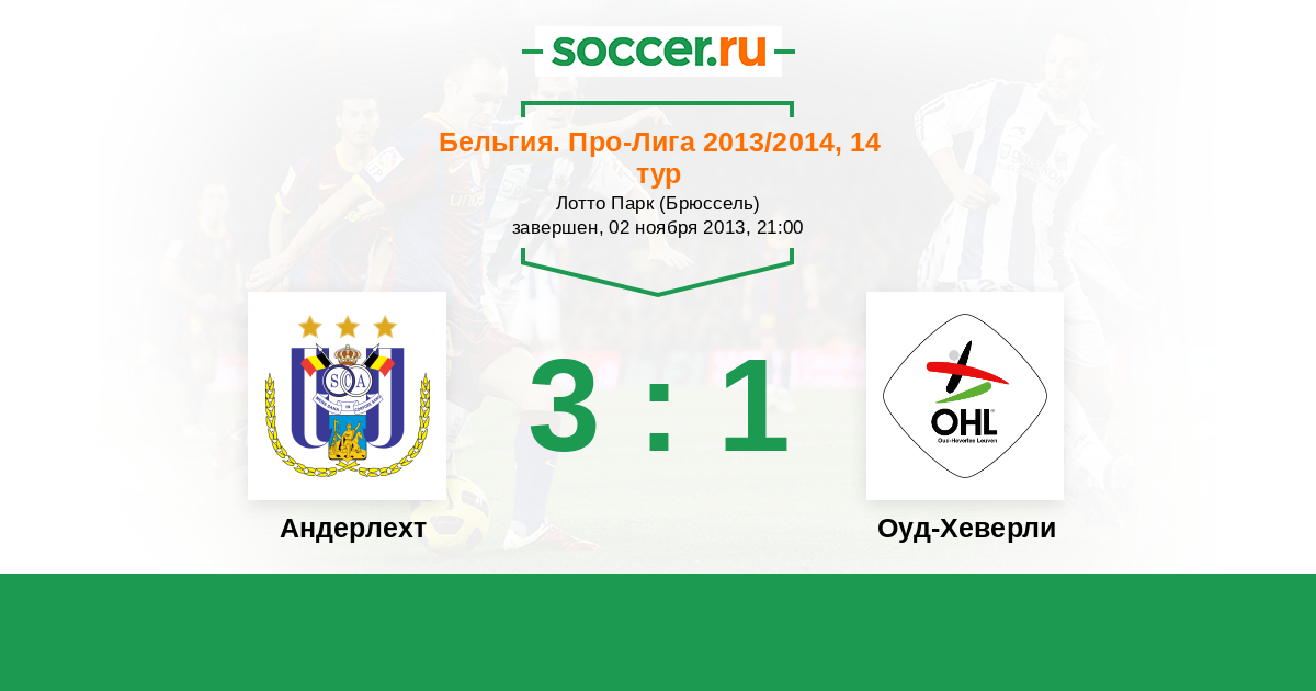 Бельгия. Про-Лига 08.03.2014 Оуд-Хеверли Логотип футбольный клуб Оуд-Хеверли (Левен) 1:0 Логотип футбольный клуб Андерлехт (Брюссель) Андерлехт