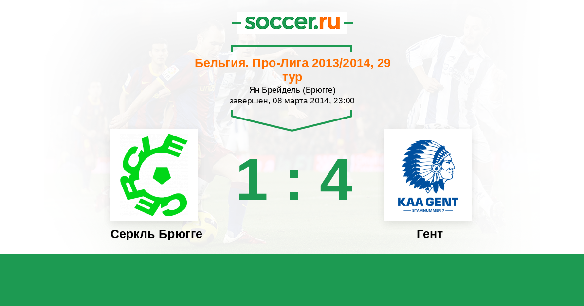 Бельгия. Про-Лига 22.11.2014 Гент Логотип футбольный клуб Гент 4:0 Логотип футбольный клуб Серкль Брюгге Серкль Брюгге