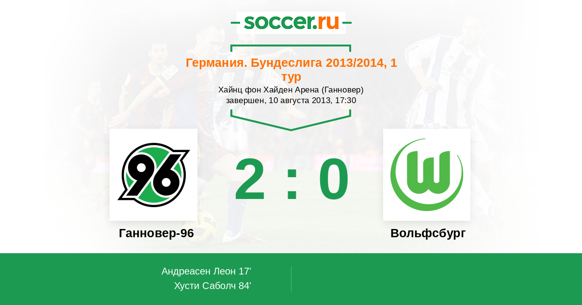 Германия. Бундеслига 02.09.2012 Вольфсбург Логотип футбольный клуб Вольфсбург 0:4 Логотип футбольный клуб Ганновер-96 Ганновер-96