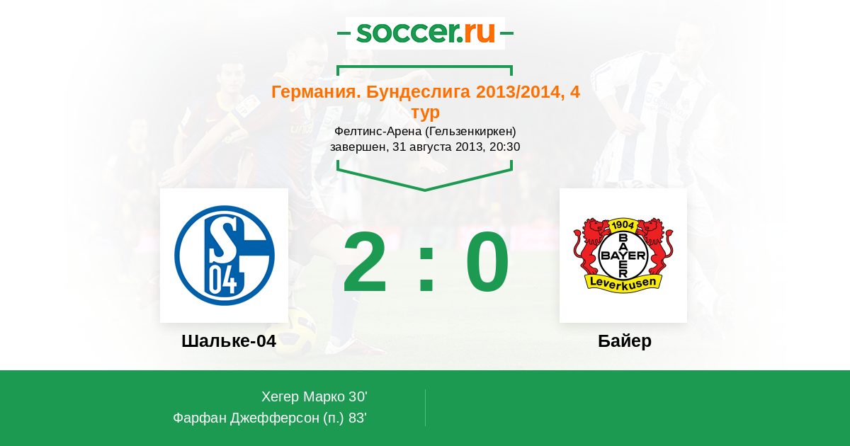 Германия. Бундеслига 15.02.2014 Байер Логотип футбольный клуб Байер (Леверкузен) 1:2 Логотип футбольный клуб Шальке-04 (Гельзенкирхен) Шальке-04