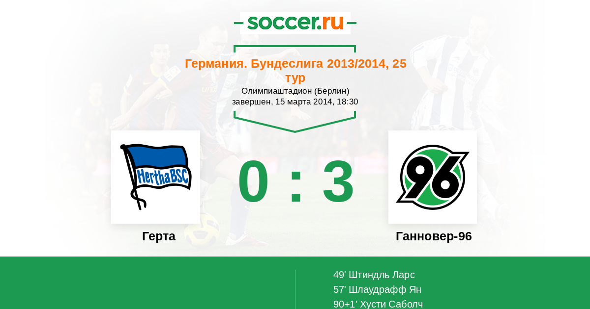 Германия. Бундеслига 04.10.2013 Ганновер-96 Логотип футбольный клуб Ганновер-96 1:1 Логотип футбольный клуб Герта (Берлин) Герта