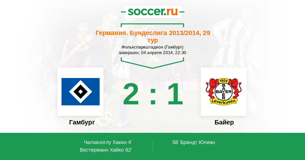 Германия. Бундеслига 04.04.2015 Байер Логотип футбольный клуб Байер (Леверкузен) 4:0 Логотип футбольный клуб Гамбург Гамбург