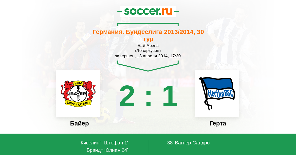 Германия. Бундеслига 14.04.2012 Байер Логотип футбольный клуб Байер (Леверкузен) 3:3 Логотип футбольный клуб Герта (Берлин) Герта