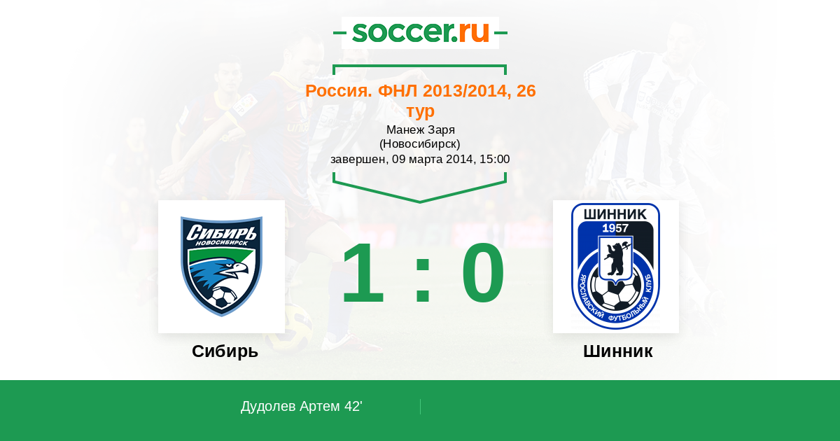 Россия. Первая лига 01.04.2013 Сибирь Логотип футбольный клуб Сибирь (Новосибирск) 2:2 Логотип футбольный клуб Шинник (Ярославль) Шинник
