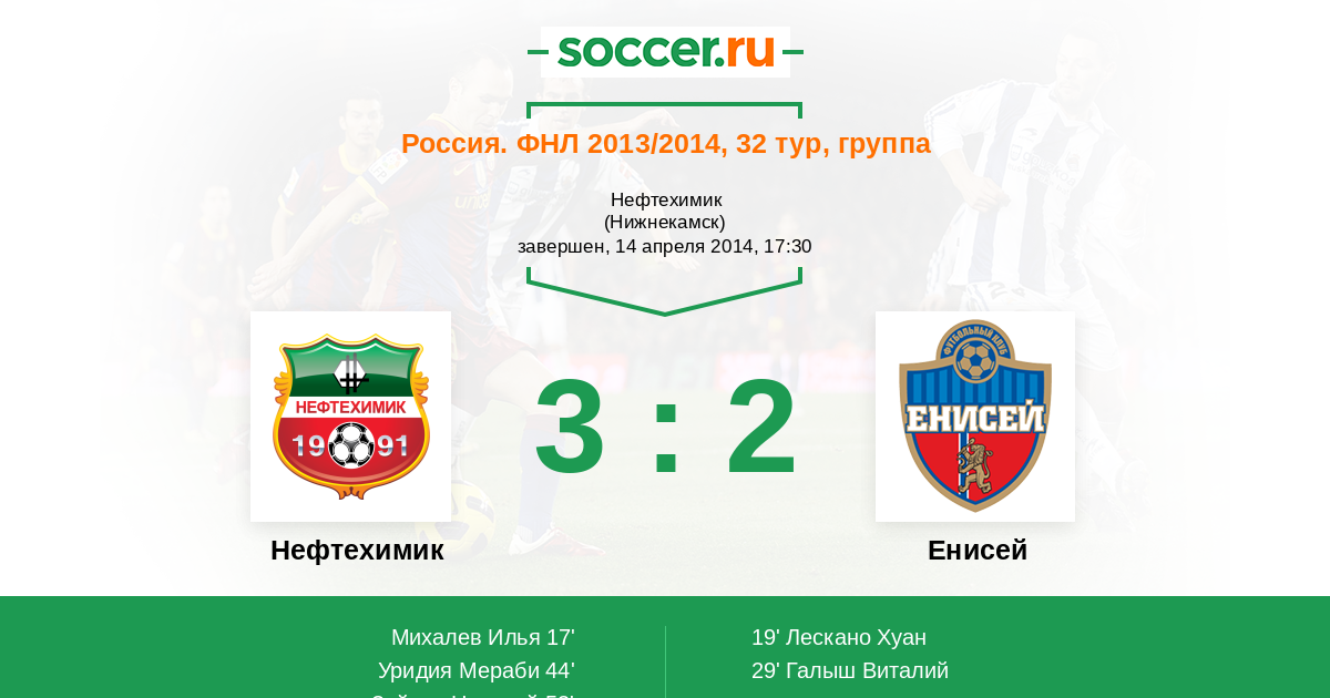 Россия. Первая лига 19.05.2013 Енисей Логотип футбольный клуб Енисей (Красноярск) 2:2 Логотип футбольный клуб Нефтехимик (Нижнекамск) Нефтехимик