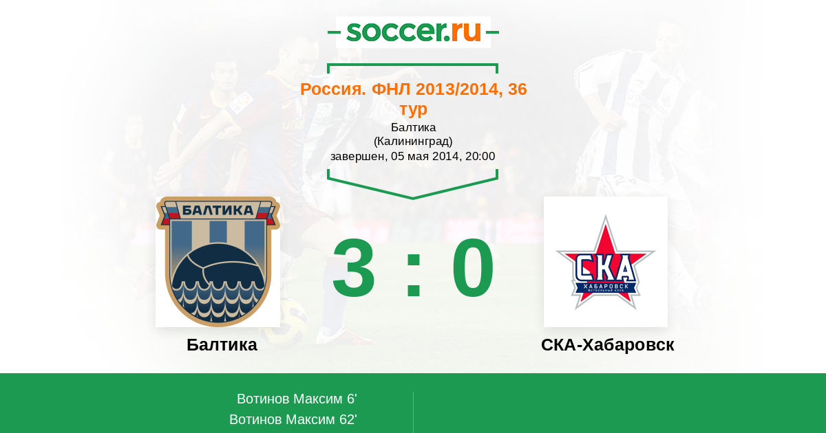 Россия. Первая лига 14.05.2013 Балтика Логотип футбольный клуб Балтика (Калининград) 1:1 Логотип футбольный клуб СКА-Энергия (Хабаровск) СКА-Энергия