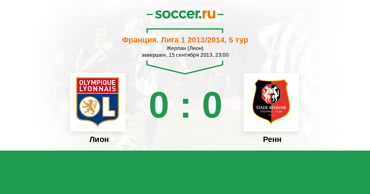Франция. Лига 1 10.08.2014 Лион Логотип футбольный клуб Лион 2:0 Логотип футбольный клуб Ренн Ренн