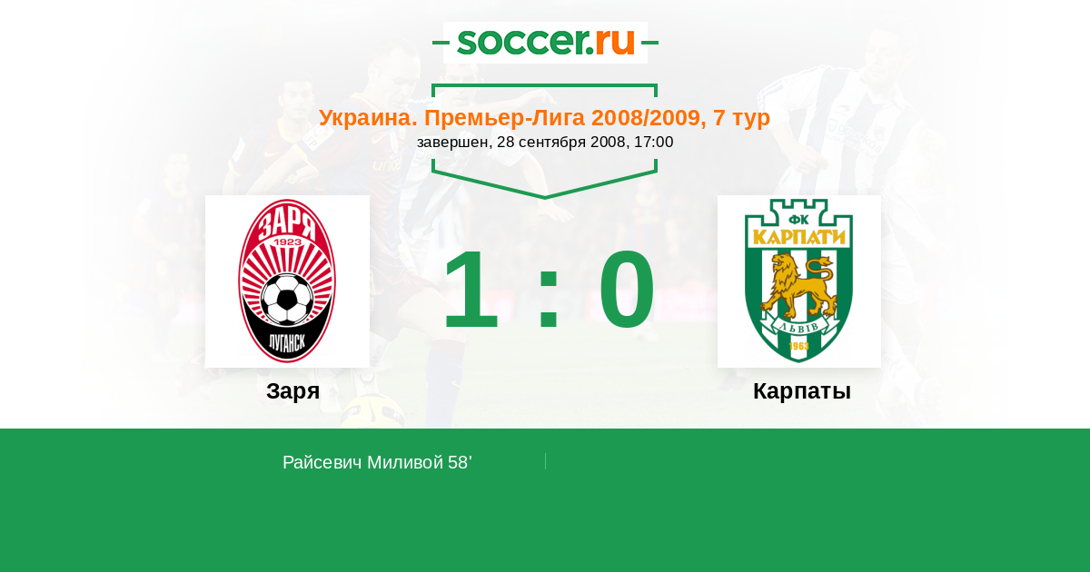 Украина. Премьер-Лига 08.08.2009 Карпаты Логотип футбольный клуб Карпаты (Львов) 4:0 Логотип футбольный клуб Заря (Луганск) Заря