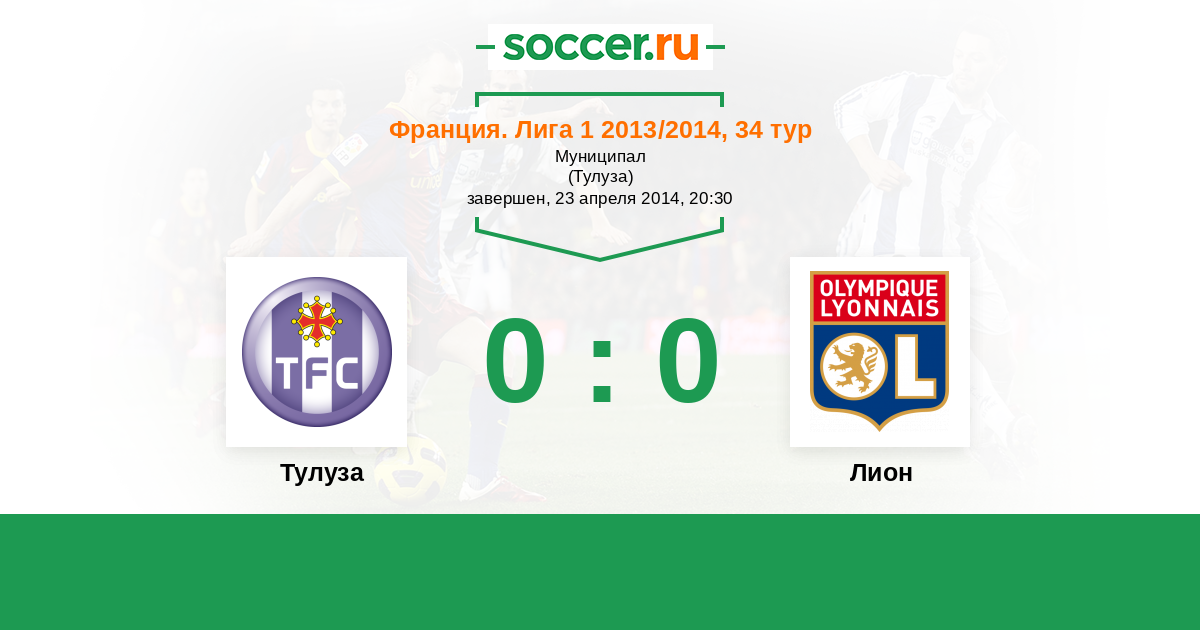 Франция. Лига 1 14.04.2013 Лион Логотип футбольный клуб Лион 3:1 Логотип футбольный клуб Тулуза Тулуза