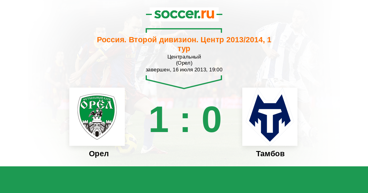 Россия. Вторая лига. Группа 3 02.08.2014 Тамбов Логотип футбольный клуб Тамбов 2:0 Логотип футбольный клуб Орел Орел