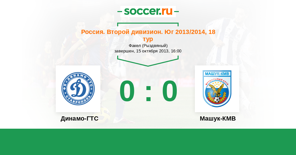 Россия. Вторая лига. Группа 1 09.11.2014 Динамо-ГТС Логотип футбольный клуб Динамо-ГТС (Ставрополь) 0:1 Логотип футбольный клуб Машук-КМВ (Пятигорск) Машук-КМВ
