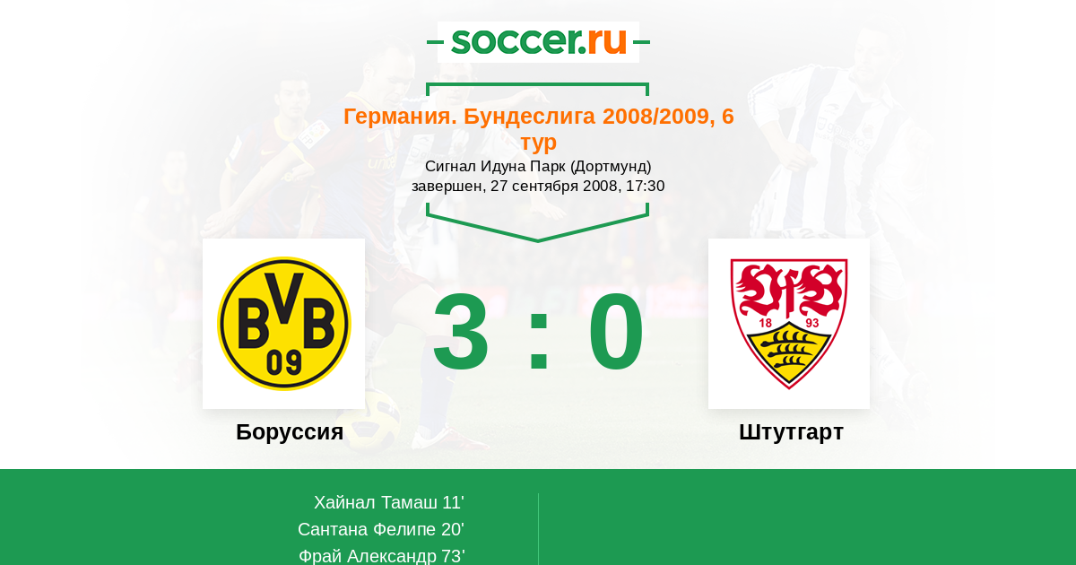 Германия. Бундеслига 22.08.2009 Боруссия Логотип футбольный клуб Боруссия (Дортмунд) 1:1 Логотип футбольный клуб Штутгарт Штутгарт