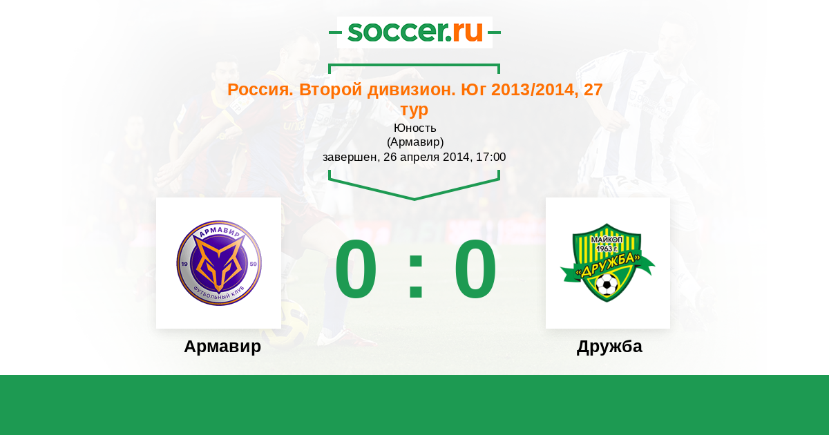 Россия. Вторая лига. Группа 1 04.06.2017 Армавир Логотип футбольный клуб Армавир 2:0 Логотип футбольный клуб Дружба (Майкоп) Дружба