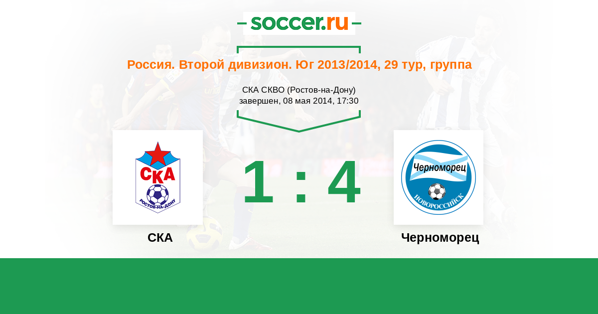 Россия. Вторая лига. Группа 1 11.04.2016 СКА Логотип футбольный клуб СКА (Ростов-на-Дону) 2:0 Логотип футбольный клуб Черноморец (Новороссийск) Черноморец