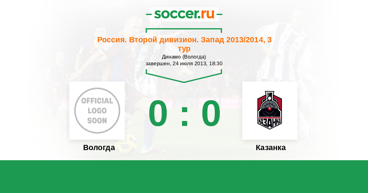 Россия. Вторая лига. Группа 2 05.06.2014 Вологда Логотип футбольный клуб Вологда 3:0 Логотип футбольный клуб Русь (Санкт-Петербург) Русь