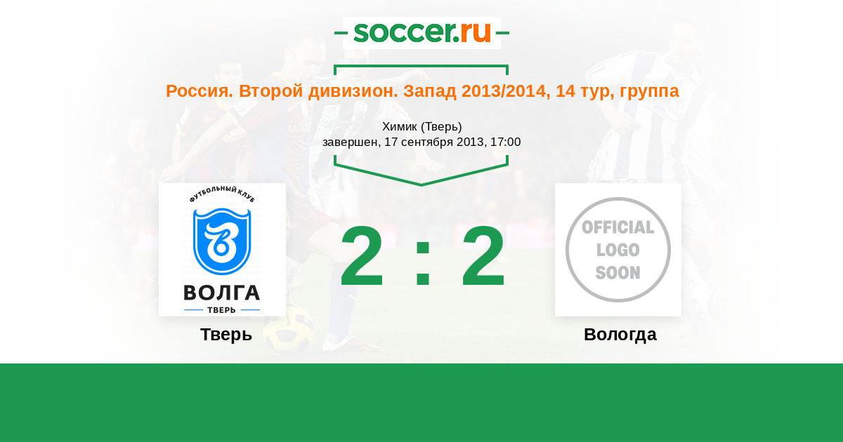 Россия. Вторая лига. Группа 2 05.11.2013 Вологда Логотип футбольный клуб Вологда 2:1 Логотип футбольный клуб Тверь Тверь