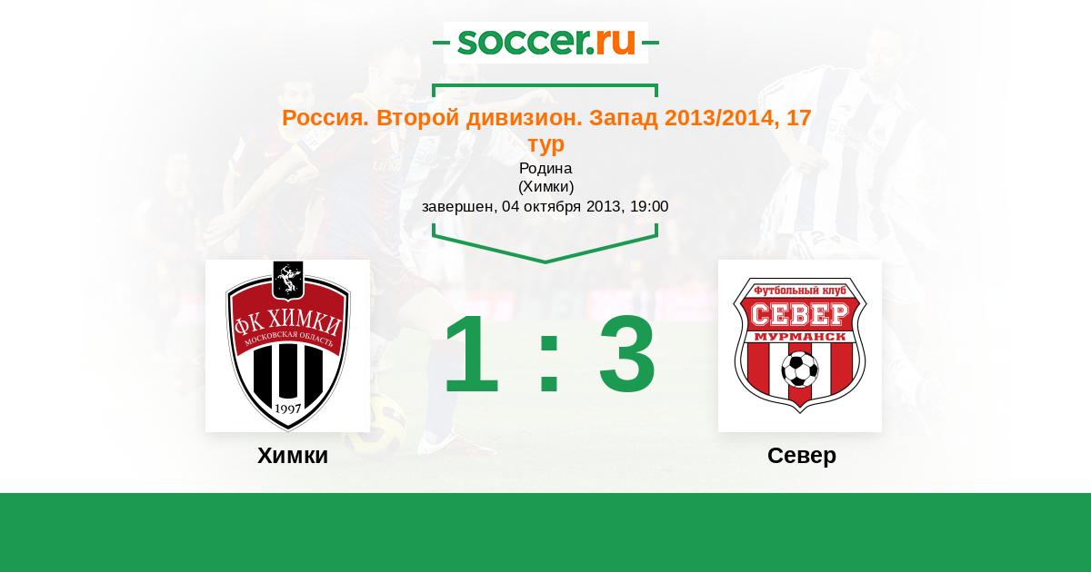 Россия. Вторая лига. Группа 2 14.10.2013 Север Логотип футбольный клуб Север (Мурманск) 2:2 Логотип футбольный клуб Химки Химки