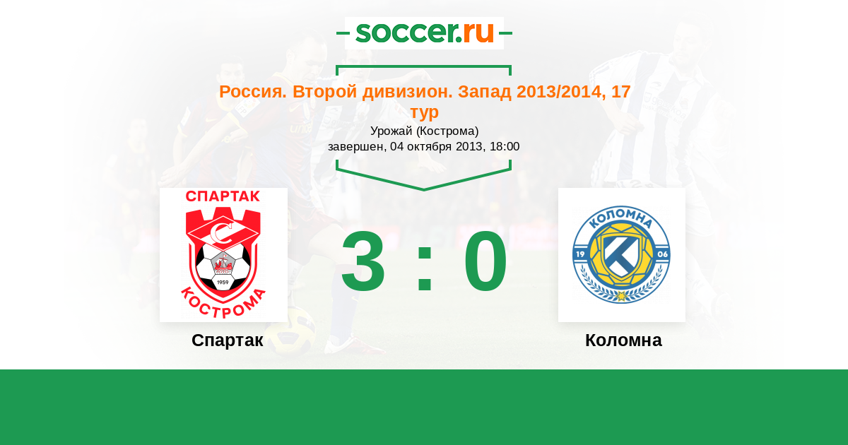 Россия. Вторая лига. Группа 2 14.10.2013 Коломна Логотип футбольный клуб Коломна 1:0 Логотип футбольный клуб Спартак Кострома Спартак Кострома