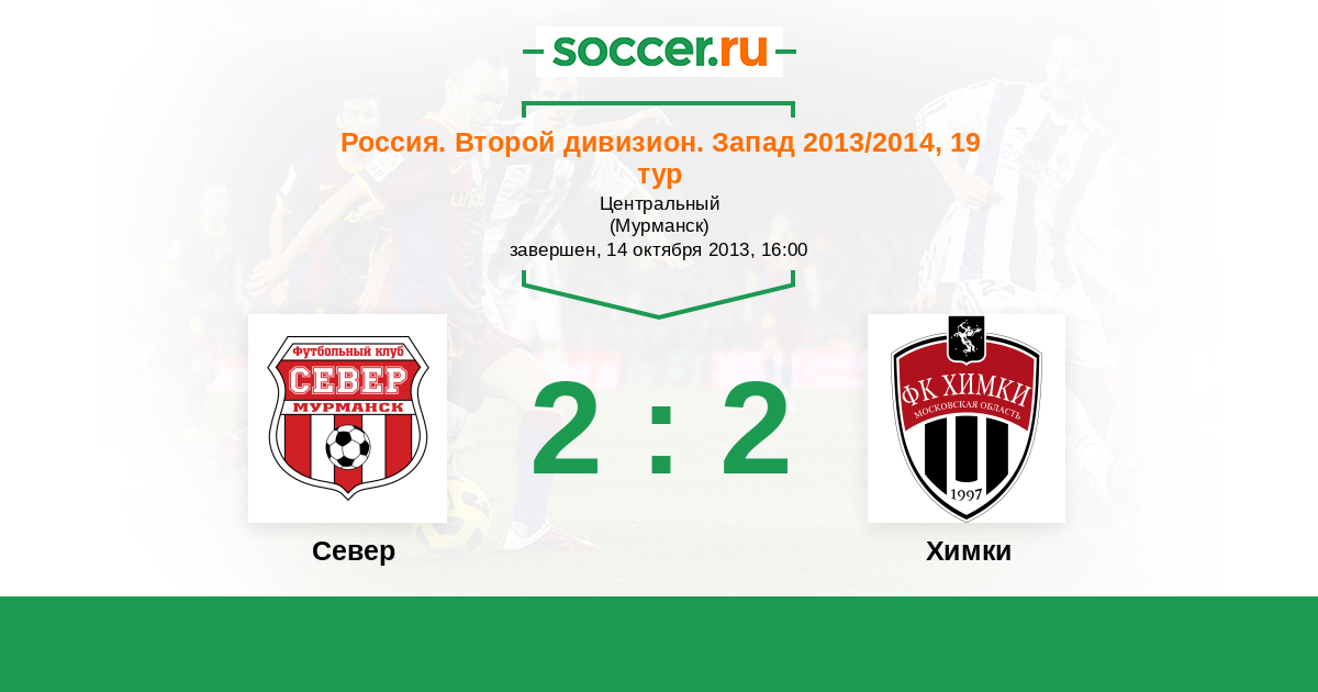 Россия. Вторая лига. Группа 2 04.10.2013 Химки Логотип футбольный клуб Химки 1:3 Логотип футбольный клуб Север (Мурманск) Север