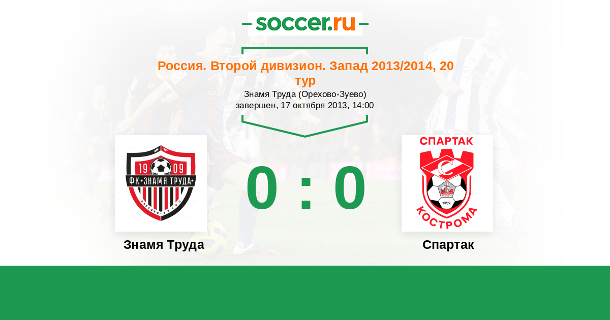Россия. Вторая лига. Группа 2 07.10.2013 Спартак Кострома Логотип футбольный клуб Спартак Кострома 6:0 Логотип футбольный клуб Знамя Труда (Орехово-Зуево) Знамя Труда