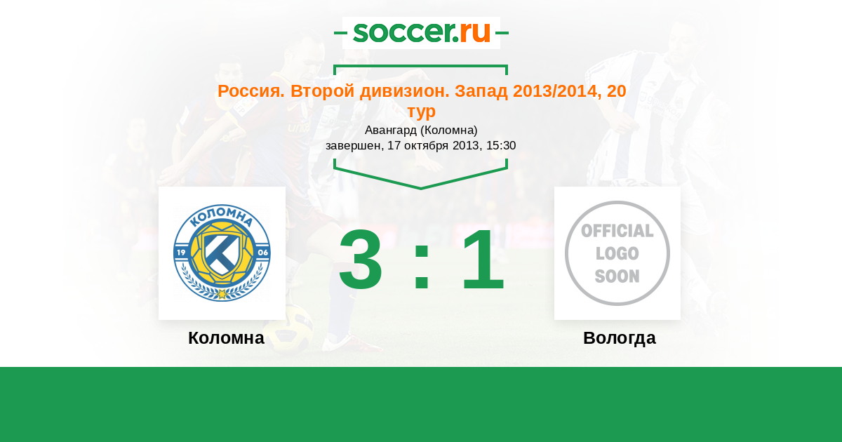 Россия. Вторая лига. Группа 2 07.10.2013 Вологда Логотип футбольный клуб Вологда 0:1 Логотип футбольный клуб Коломна Коломна