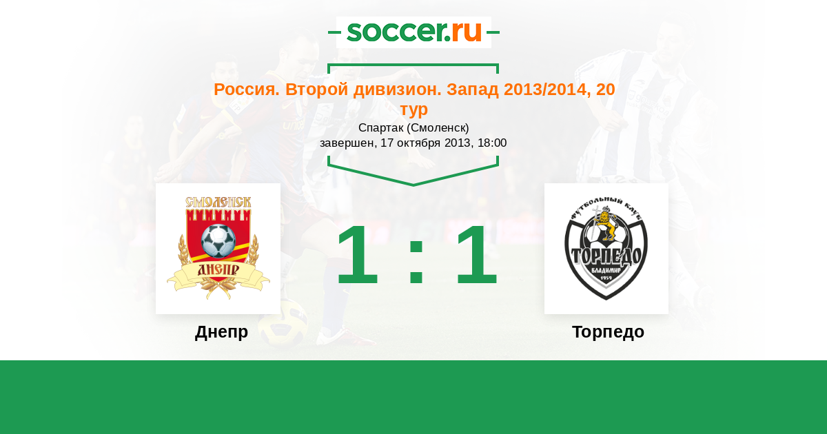 Россия. Вторая лига. Группа 2 07.10.2013 Торпедо Логотип футбольный клуб Торпедо (Владимир) 2:3 Логотип футбольный клуб Днепр (Смоленск) Днепр