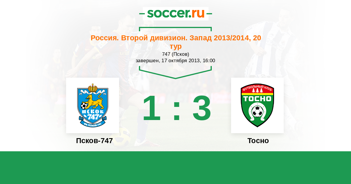 Россия. Вторая лига. Группа 2 07.10.2013 Тосно Логотип футбольный клуб Тосно 2:0 Логотип футбольный клуб Псков-747 Псков-747